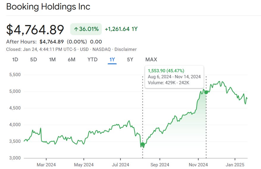This pattern repeated with Booking Holdings, which also experienced a significant rise.