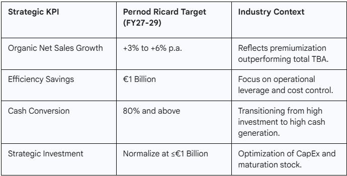 The disposal of lower-margin businesses is another structural lever. The sale of the Imperial Blue business in India and the strategic wine brands is expected to be immediately accretive to the group’s overall gross and operating margins. For example, disposals of non-core brands are estimated to add approximately +260bps to Gross Margin and +80bps to Operating Margin in the medium term.